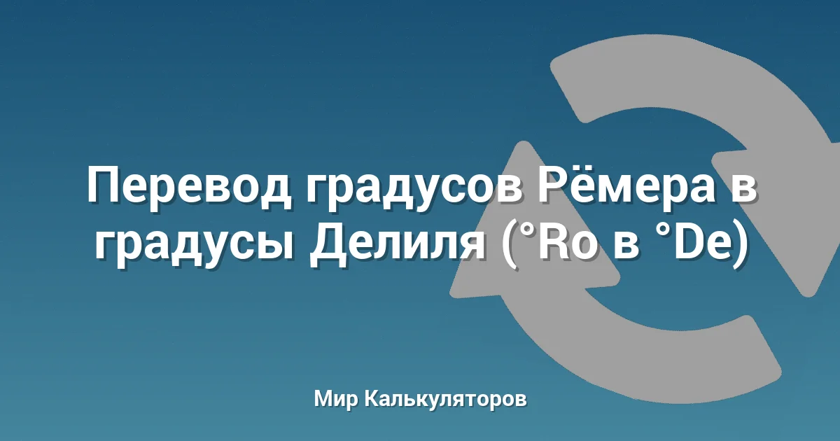 Этот калькулятор позволяет точно перевести температуру из градусов Рёмера (°Ro) в градусы Делиля (°De).