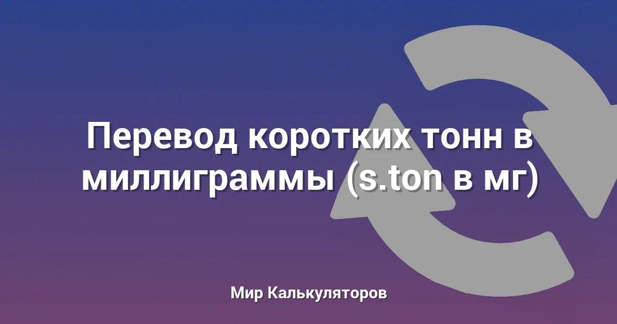 Простой инструмент для конвертации массы из коротких тонн (s.ton) в миллиграммы (мг).