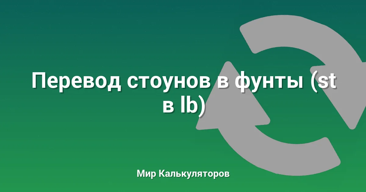 Простой инструмент для конвертации массы из стоунов (st) в фунты (lb).