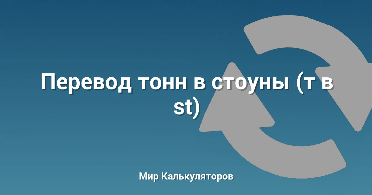 Простой инструмент для конвертации массы из тонн (т) в стоуны (st).