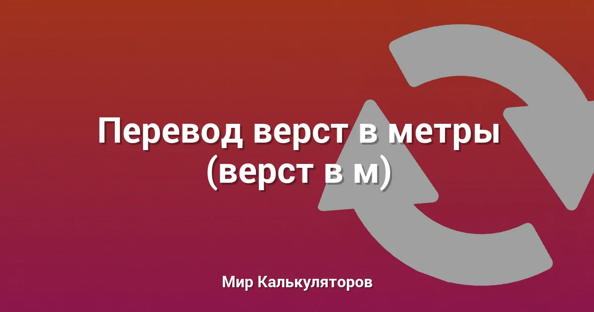 Используйте калькулятор для перевода длины из верст (верст) в метры (м).